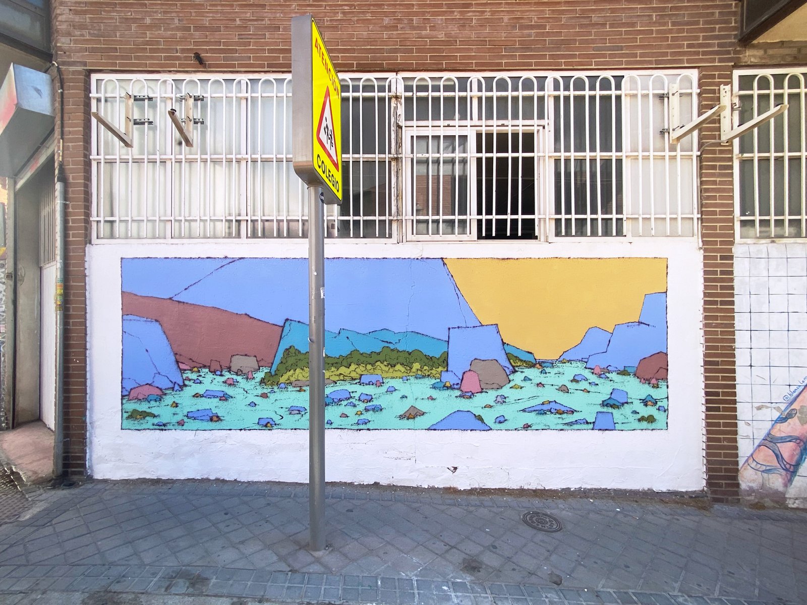 Allí donde quiero estar es un proyecto mural que nace de la memoria. Un puente entre los paisajes del Oriente asturiano y la distancia desde la que hoy se recuerdan. Las obras transforman fragmentos personales —caminos, montes, cielos, orillas— en un lenguaje pictórico que combina arte urbano contemporáneo, color y gesto.