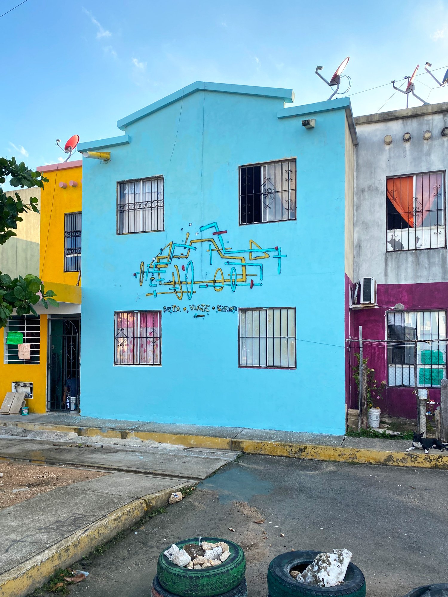 Mi práctica mural se construye sobre el color, el movimiento y el azar, pero también sobre la conciencia del material y su ciclo.